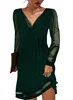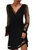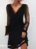 Robe en dentelle à manches latérales et col en v pour femme, vêtement de couleur pure, nouvelle collection printemps 2022