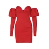 Robe moulante Sexy pour femmes, couleur unie, portefeuille, poitrine, dos nu, manches bouffantes, rouge, tenue de soirée, anniversaire, Club