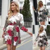 Robe imprimée à manches longues et col en v pour femmes, collection printemps automne 2022