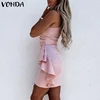 VONDA – Robe asymétrique plissée pour Femme, tenue de soirée élégante, asymétrique, épaule dénudée, tunique, fermeture éclair, couleur unie, 2022