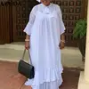 VONDA – Robe longue de plage sans manches, manches évasées, plissée, ourlet à volants, style bohémien, col à nœud, été