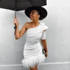 Robe d'été élégante, blanche, asymétrique, sexy, plumes, pour boîte de nuit, fête, 2022