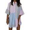 Robe décontractée à rayures et manches courtes pour femmes, impression contrastée, nouvelle collection printemps et été 2022