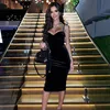 Robe mi longue en velours pour femmes, élégante, Sexy, bretelles Spaghetti, dos nu, col en v, Slim, mode, Robe de soirée, 2022