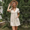 Mini robe en coton à manches amples, col en v, décontractée, mode femmes, robe trapèze, couleur unie, rétro, taille haute, été, 2021