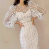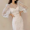 Robe de soirée à manches longues pour femmes, élégante, fée blanche, col ras du cou, maille transparente, superbe, charmante, dentelle, robe fourreau, nouvelle collection