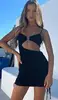 Robe de plage sans manches à lacets pour femmes, robe d'été mi longue à dos nu, enveloppée avec anneau, amincissante