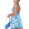 Robe moulante à motif Floral pour femmes, dos nu, bleu