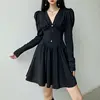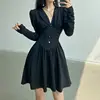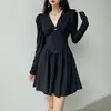 Robe froncée taille haute style palais français, robe à manches longues, col en v, taille fine, ligne a, grande taille, pour femme