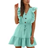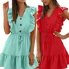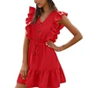 Robe Mini décontractée à lacets, nouveauté, col en v, manches courtes papillon, volants, vert menthe, rouge, été, 2022
