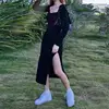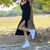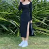 Robe à manches longues pour femmes, décontractée, fente latérale, Sexy, élégante, tendance, Streetwear, couleur Pure, col carré, Simple
