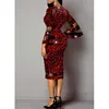 Robe mi longue en maille pour femmes, nouveauté, élégante, cousue, manches longues, imprimée sur les hanches, col en v, Sexy, printemps 2022