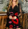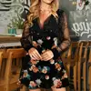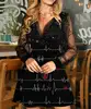 Mini robe de soirée courte pour femmes, tenue de printemps 2022, maille cousue, manches longues, col en V, Sexy