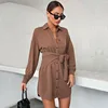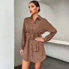 Robe Midi décontractée en Satin avec poches et boutons, avec ceinture, col rabattu, manches longues, à la mode, 2022