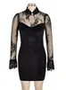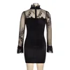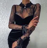 Mini robe en dentelle cousue en velours doré et noir pour femme, tenue moulante à manches longues, Sexy, nouvelle collection printemps 2022