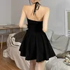 Goth Dark – Mini robe gothique noire à bandes, tenue de soirée pour femmes, egirl, mignon, slim, ourlet en dentelle, Sexy, dos nu, col licou, vêtements en Alt