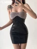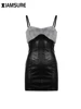 IAMSURE – robe moulante en cuir Pu, Patchwork, fourrure, Sexy, Slim, col Slash, sans manches, Mini robes pour femmes, mode dames, 2021