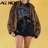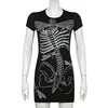 ALLNeon – robe moulante noire moulante, Streetwear, Punk, imprimé squelette, center commercial Goth Y2K, col rond, manches courtes, graphique, Mini, Slim