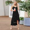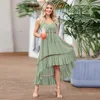 Élégant Mousseline De Soie Printemps Eté Robes 2022 Plus La Taille Creux Irrégulier Slip Jupe Femme Midi Bandage Casual Couleur Unie Mince Bleu Vert Rose Noir Tempérament Femme Vêtements Robe