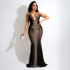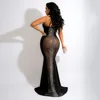 Wishyear – robe de soirée fantaisie, tenue de soirée longue, scintillante, cristal strass, maille, transparente, Sexy, moulante, Maxi, 2022