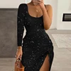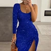 Jupe longue fendue à manches longues pour femmes, décontractée, robe du nouvel an, asymétrique, épaule dénudée, fête, automne, couleur Pure, robe élégante pour le bureau, 2022