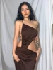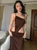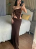 Robe cryptographique Sexy à bandes, épaules dénudées, Maxi, pour femmes, boîte de nuit, soirée, dos nu, sans manches, bretelles, marron, été, 2022
