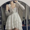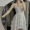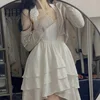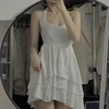 HOUZHOU – Mini robe blanche dos nu pour femmes, Sexy, élégante, Kawaii, col licou, sans manches, à volants irréguliers, style féérique, taille haute, style coréen