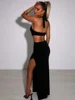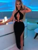 Cryptographic – robe longue fendue pour femmes, Sexy, découpée, col licou, tenue de soirée, dos nu, sans manches, élégante
