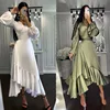Robe à manches longues pour femmes, nouvelle collection automne 2022, décolleté en V profond, couleur unie, coupe cintrée
