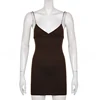 Darlingaga – robe courte à col en V pour femme, tenue Sexy, moulante, à bretelles chics, marron, dos nu, à la mode