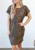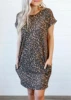 Mini robe ajourée pour femmes, imprimé léopard, poches dans le dos, t shirt à manches courtes, décontracté, ample, été, 2020