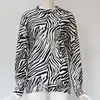 Sweat à capuche imprimé zèbre pour femme, haut tricoté, décontracté, col montant, manches longues, nouvelle collection automne 2021