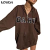 VONDA – sweat shirt surdimensionné à capuche pour femmes, Vintage, poches, lettres imprimées, fermeture éclair, décontracté, automne, 2022