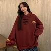 Sweat shirt à capuche pour femme, Style chinois, Vintage, avec nœud, Cheongsam, lettre imprimée, surdimensionné, Style H, automne