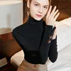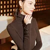 T Shirt à manches longues pour femmes, couleur café, Slim, résistant, sous vêtements thermiques noirs à col haut, nouvelle collection automne hiver 2021