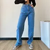 Pantalon droit pour femme, jean taille haute, Slim, ample, décontracté, fendu, lavé, maman, automne hiver