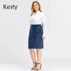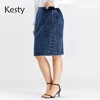 Kisty – jupe en Denim décontractée pour femmes, grande taille, haute flexibilité, mode, jupe tricotée