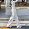 Jean taille haute à boutons pour femmes, pantalon de nettoyage ample à jambes larges, droit et allongé