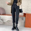 Pantalon en Denim épais molletonné pour femme, jean ample, taille haute, Slim, chaud, élastique, jambes larges, en velours, nouvelle collection hiver