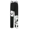 Jeans en Denim noir pour femmes, pantalon Large en Patchwork de vache à lait pour filles, taille haute, grande taille, bas bleus, 2021