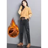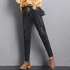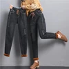 Pantalon sarouel à lacets pour femme, en Denim, chaud, élastique, avec cordon de serrage, en velours, Slim, style coréen, épais, collection hiver