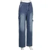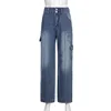 Y2K – pantalon évasé à jambes larges pour femme, avec cordon de poche, bleu uni, taille haute, Design classique, pantalon ample, collection hiver automne 2021