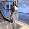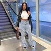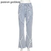 Jean slim décontracté pour femme, pantalon évasé, bleu rétro délavé, Stretch, Long, Denim, grande taille, automne