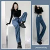 Jeans taille haute pour femmes, pantalon à jambes larges, décontracté, Style de rue rétro, nouvelle collection automne et hiver 2021