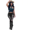 Pantalon en jean déchiré pour femme, vêtement décontracté, avec pampilles, ajouré, taille haute, jogging, collection automne 2021
