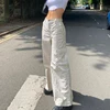 Jean droit blanc Style coréen, pantalon Patchwork à jambes larges, taille basse, décontracté, salopette Streetwear