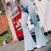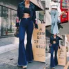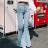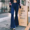 Grand jean évasé pour femmes, pantalon en Denim, taille haute, Slim, couleur unie, mode de rue
