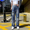 Jeans de petit ami pour femmes, pantalon ample, taille haute, déchiré, à jambes droites, Y2k, 2021