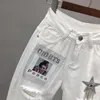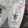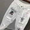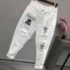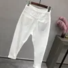 Jean blanc pour femmes, pantalon en Denim, taille haute, troué, décontracté, ample, imprimé, printemps automne