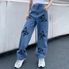 Jean Vintage pour femme, pantalon Long de Cowboy, Streetwear, ample, imprimé papillon, nouvelle collection été 2021